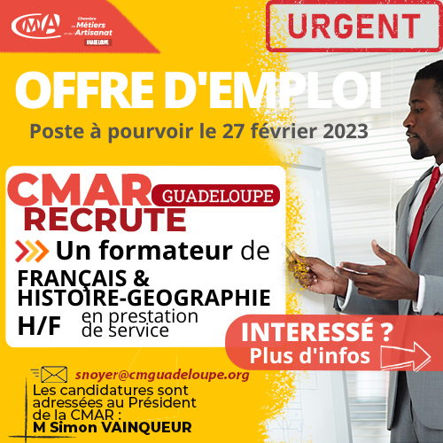 Les candidatures sont à adresser au Président de la Chambre de Métiers et de l’Artisanat de Région Guadeloupe, Monsieur Simon VAINQUEUR à snoyer@cmguadeloupe.org ou contactez le 0590 80 23 33.
