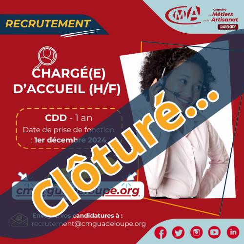 Les candidatures sont adressées au Président de la CMAR – M Simon VAINQUEUR recrutement@cmguadeloupe.org